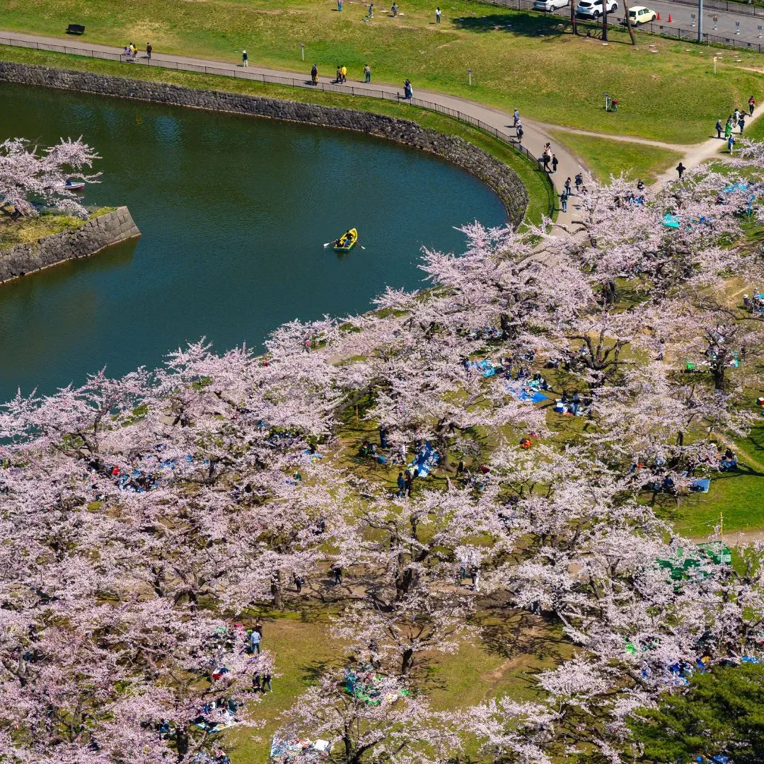 Q3. Which single sakura spot in northern Japan is most worth visiting?If you can only visit one place, make it Hirosaki Castle Park in Aomori. With 2,600 cherry trees of 52 varieties, a historic castle, a snow-capped volcano backdrop, a petal-covered moat, and a dedicated festival with night illuminations, it consistently ranks among Japan's very finest sakura destinations. A close second is Goryokaku Fort in Hakodate, whose star-shaped geometric design viewed from above during bloom is one of the most visually unique sakura experiences in the world.